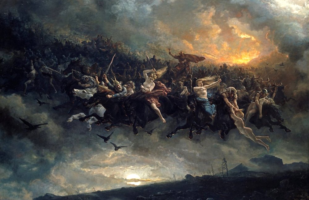 In dieser Zeit zwischen Weihnachten und Anfang Januar haben die Seelen der Verstorbenen und die Geister Ausgang, denn die Anderswelt steht weit offen. Das Bild „Die Wilde Jagd von Odin“, welches 1872 von Peter Nicolai Arbo erschaffen wurde, verdeutlicht für mich die Wildheit und Gefährlichkeit dieses Ereignis, was in dieser oder ähnlicher Art in alten Traditionen und Ritualen noch heute nicht vergessen wurde.